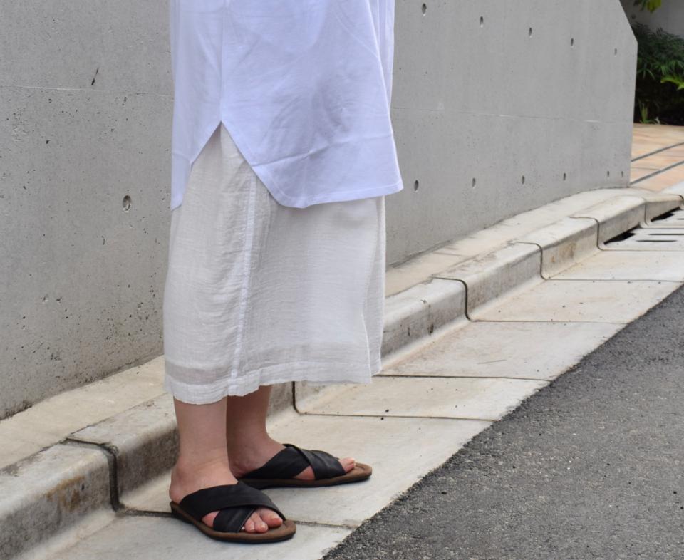 ボトムスには、ARMENのガーゼ素材のスカートを。