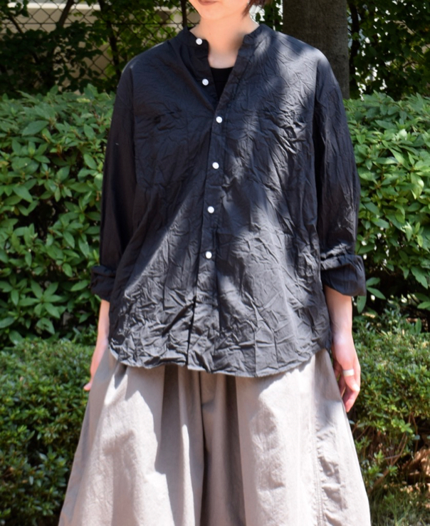 少し張りのあるポプリン生地はシワが入ることで立体感とボリューム感が魅力となっています。