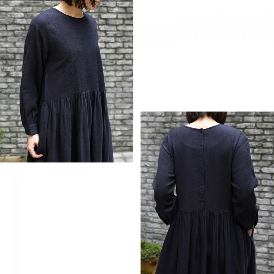 包みボタンや刺繍がクラシカルな雰囲気。