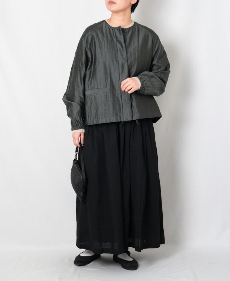中に厚手のニットやカーディガンを重ねても着ぶくれしにくい一着。