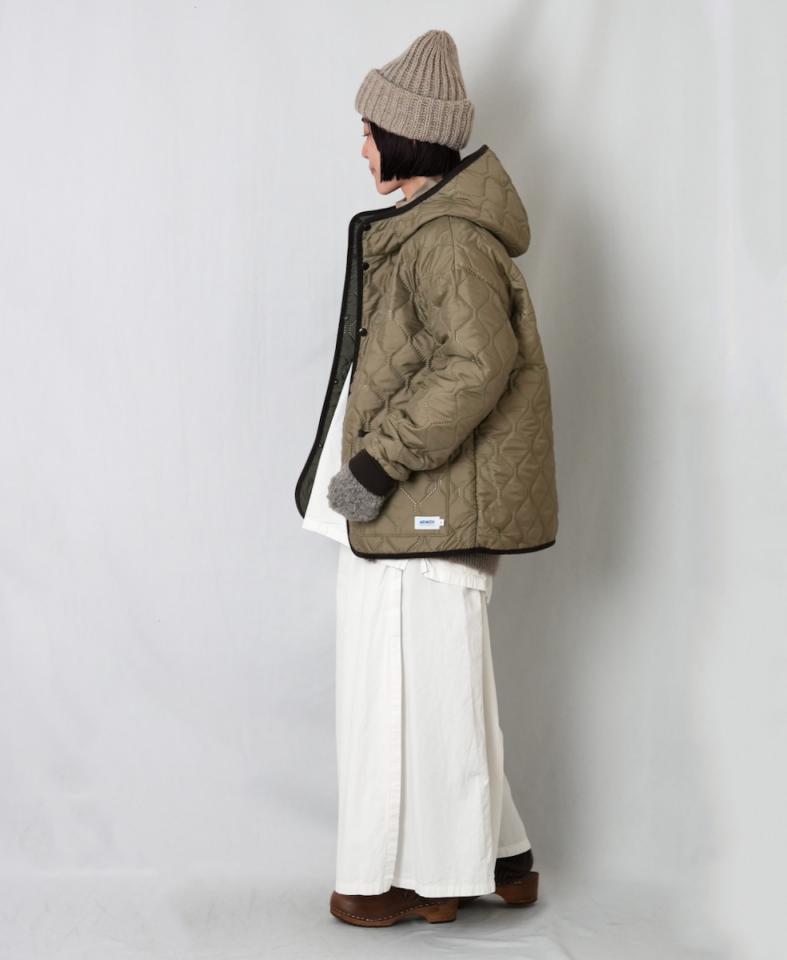コーディネートに自然と馴染むキルティングコートです。