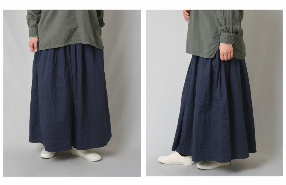 スネが隠れるほどのすっきりとした丈感です。