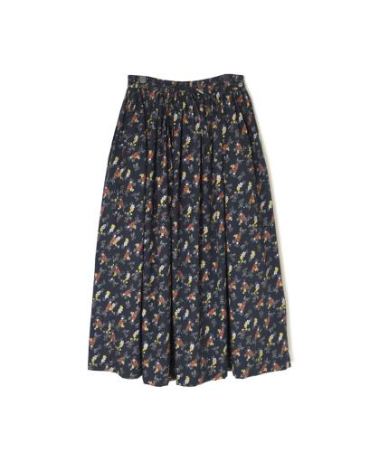 NSL24541(シャツ) 40s POPLIN FLOWER PRINT BAND COLLAR GATHERED SHIRT