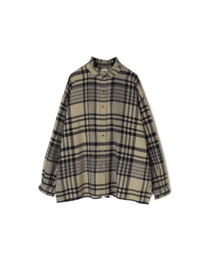 INMDS25732(シャツ) HANDWOVEN HEAVY COTTON CHECK BACK OPENING STAND COLLAR SHIRT WITH MINI PINTUCK